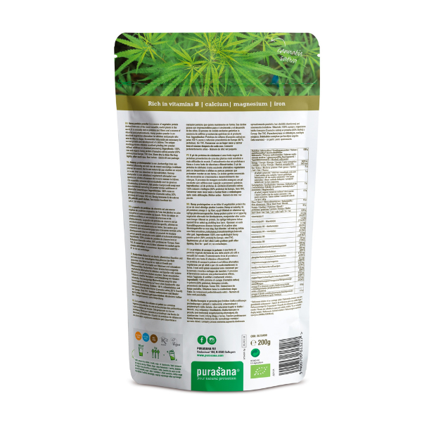 100 % poudre de protéine de chanvre brut et biologique (Cannabis sativa, 50 % protéine) de l’ Europe.